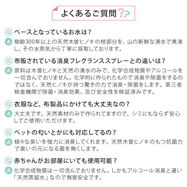 他の画像を見る 除菌率99%以上!天然成分100%で安心・安全に使える木曽ヒノキ消臭除菌スプレー ヒノキ 消臭 除菌 スプレー HINOKI SPRAY 50ml 直販価格 ¥ 858 税込 詳細を見る お気に入りに登録する