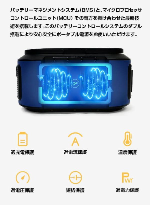 ●保護回路:短絡保護回路、過充電保護回路、過電流保護回路、過放電保護回路、過剩温度検出、保護回路