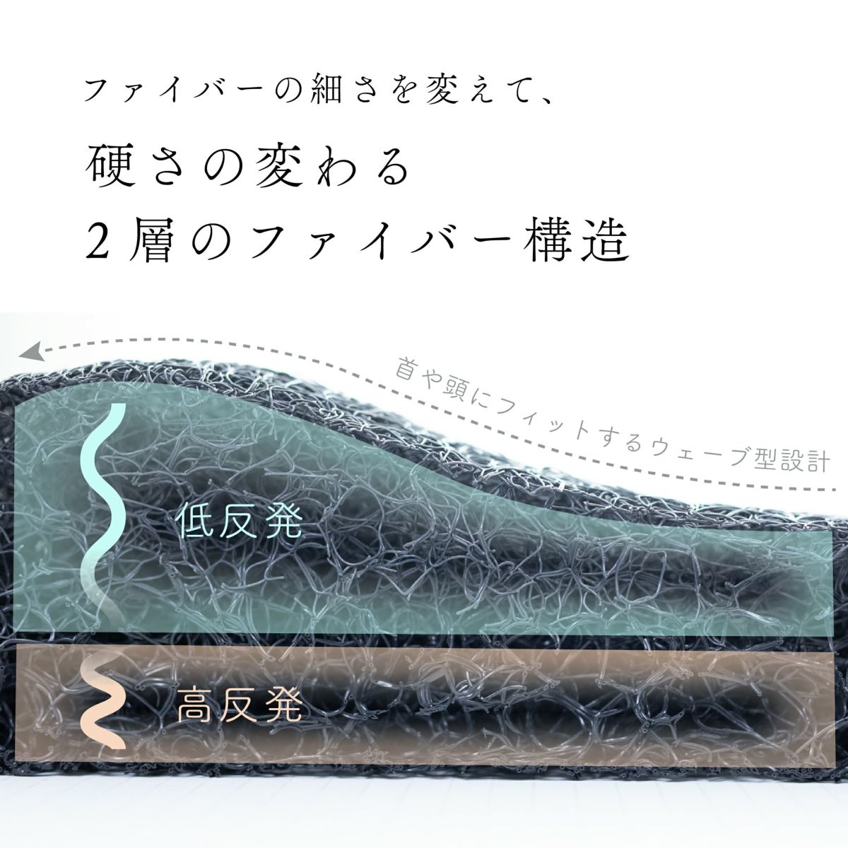 複雑に絡んでいても、隙間をしっかりと残している中材のおかげで、通気性が抜群。湿気や熱気を含んだ空気に風を通し、空気の入れ替えをしてくれます。