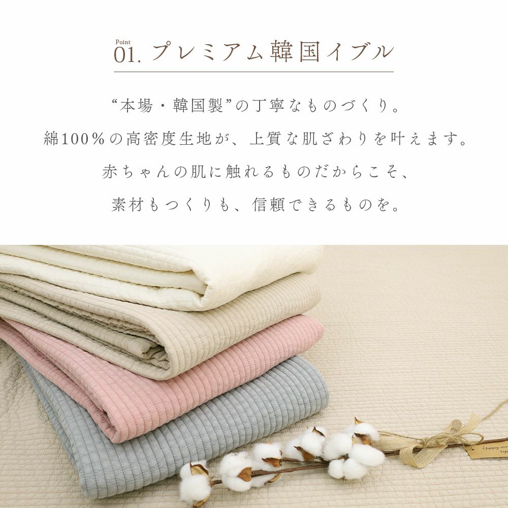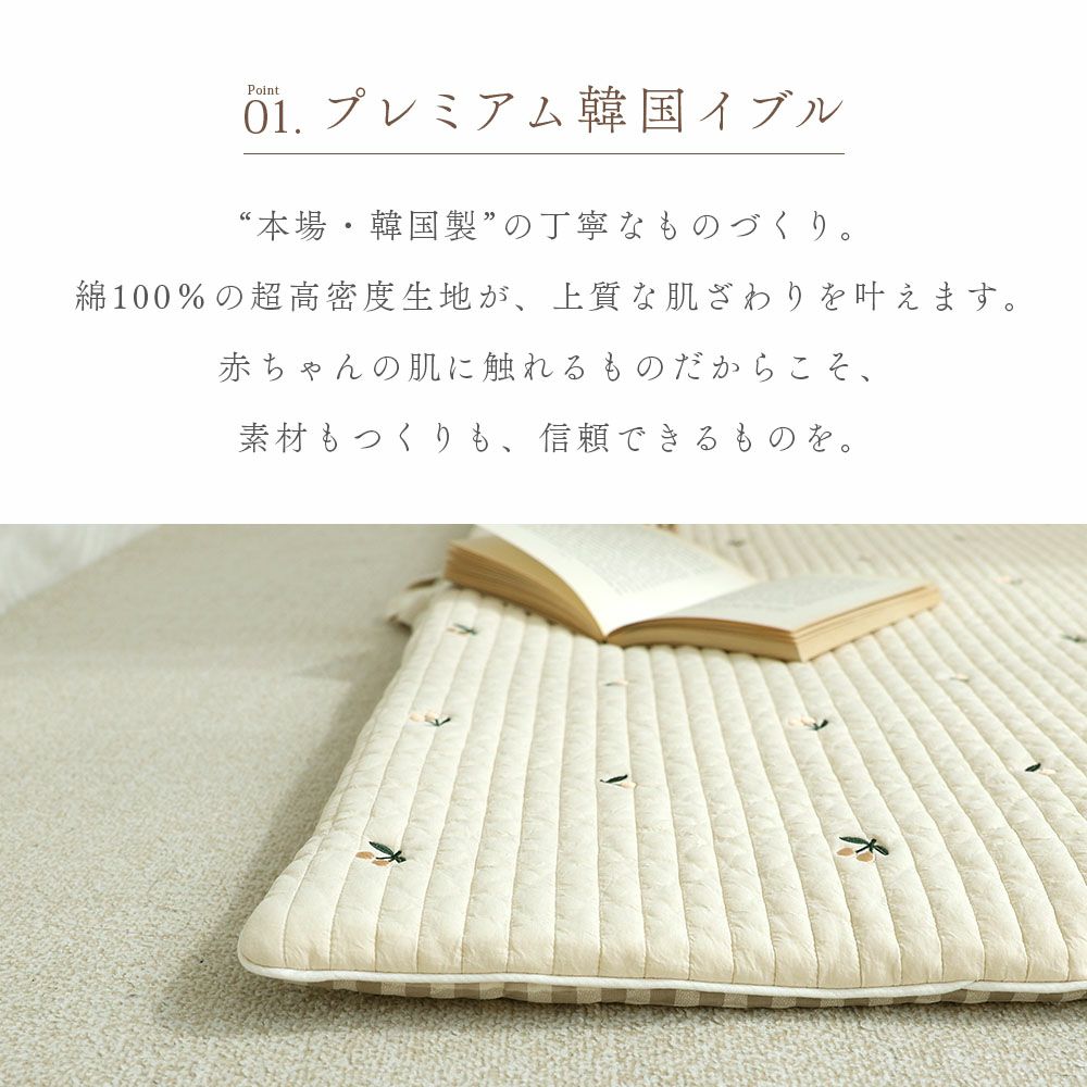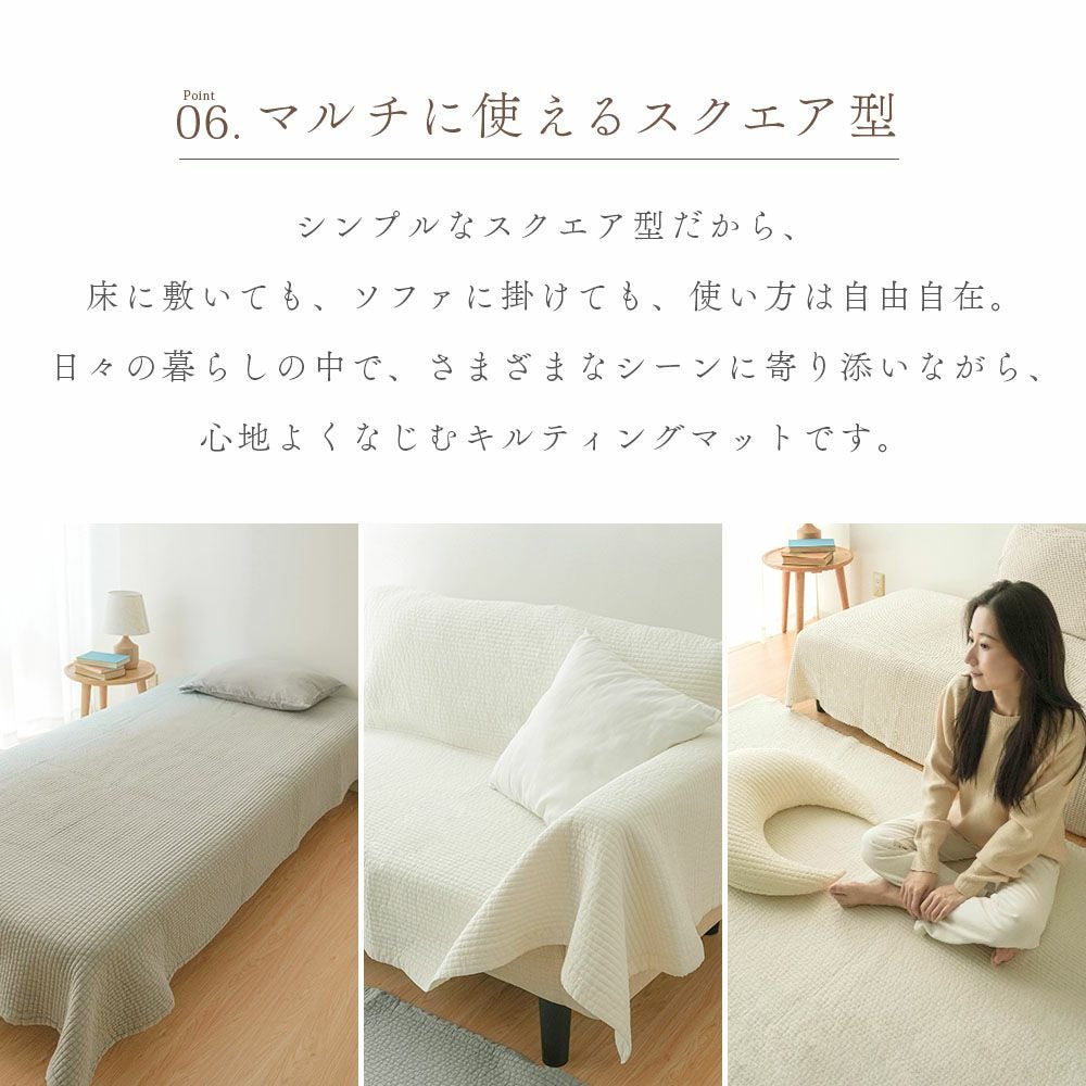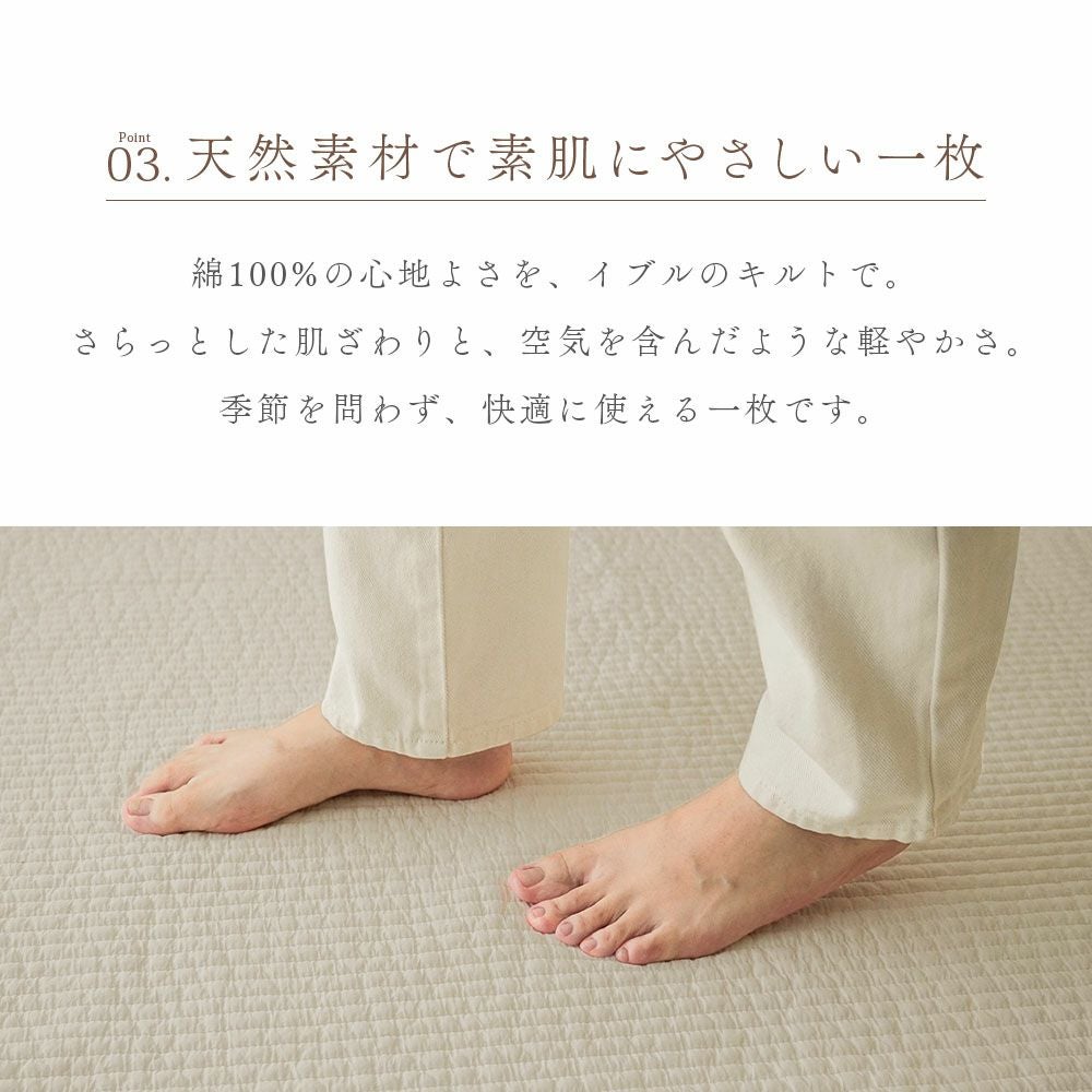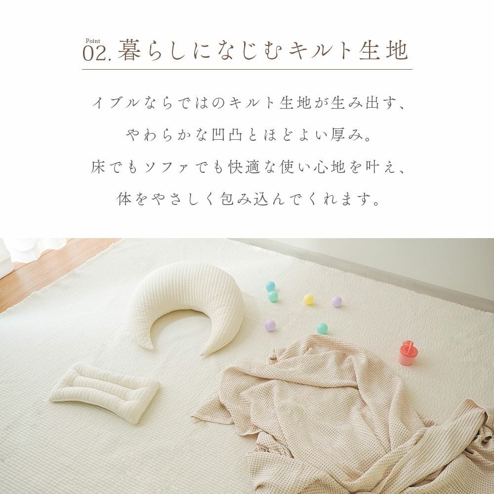 ほどよいキルトのぽこぽこ感が肌に触れて離れる感覚がクセになるずっと触っていたい気持ち良さのイブルキルティングマット。