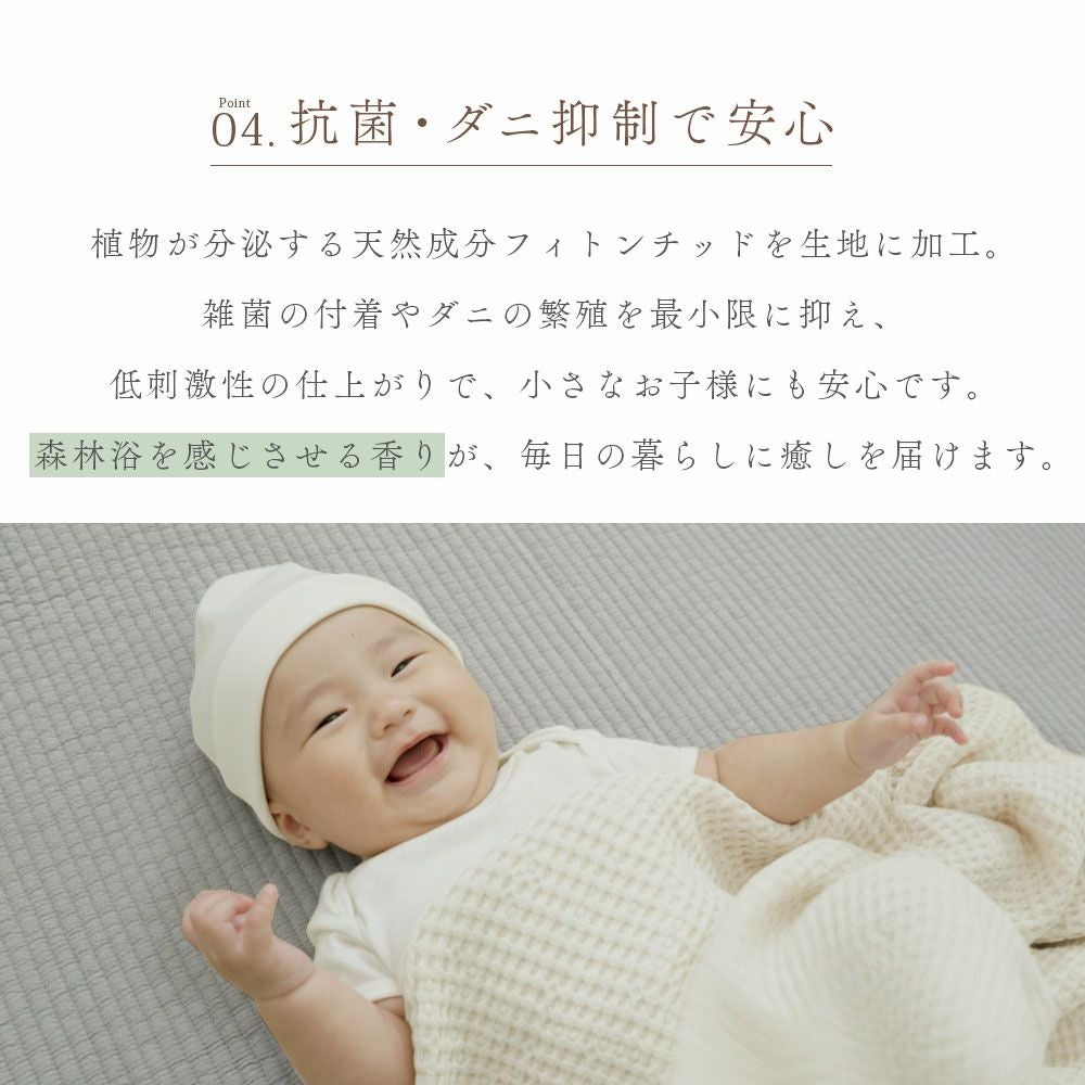 天然素材コットン100%使った生地は、赤ちゃんにも安心。