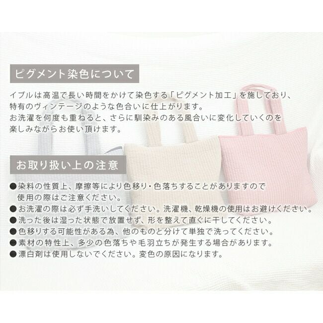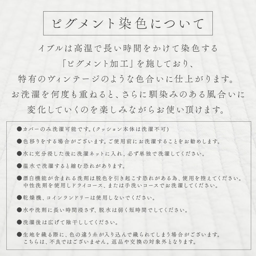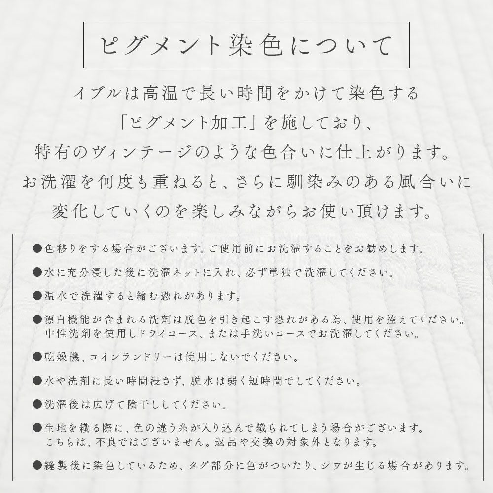 洗うほどに柔らかく馴染み、独自の色合いに変化していくイブルの風合いを楽しむことができます。