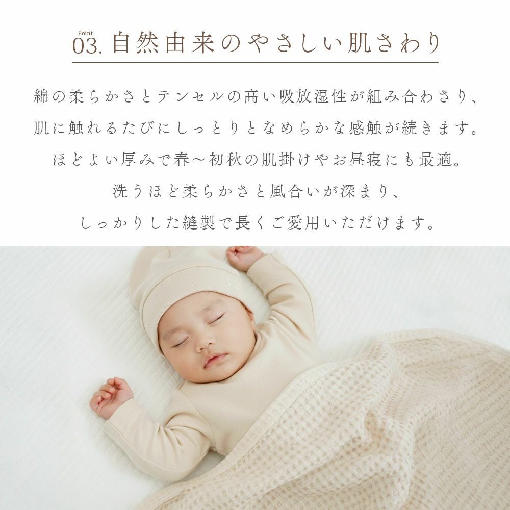 天然素材コットン100%使った生地は、赤ちゃんや敏感肌の方にも安心。