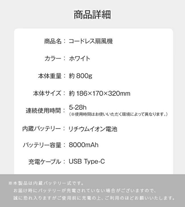 バッテリー内蔵!コードレス扇風機