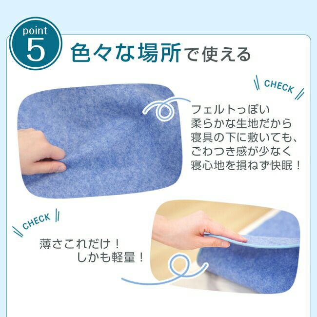表面の生地には“乾きが早く・軽いソフトメッシュ生地”を使用しているので、防水シーツでよくあるパイル生地タイプよりも、速乾性に優れています!