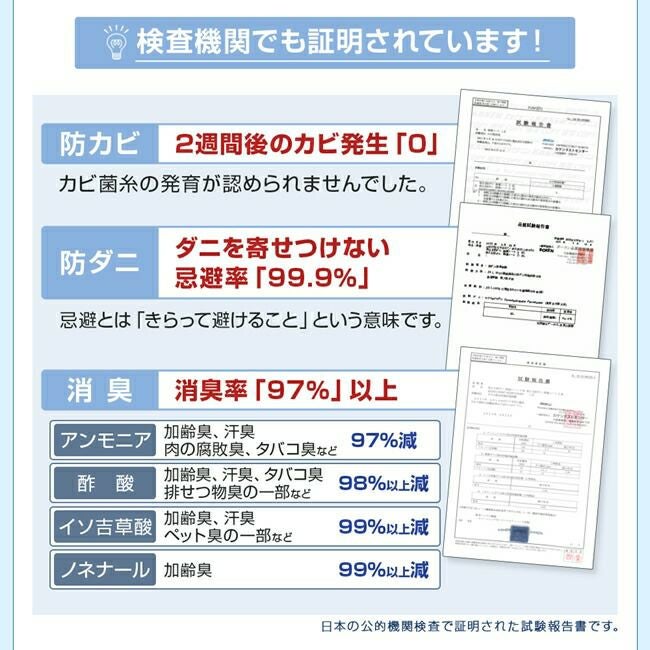 公的機関でも認められた防ダニ・抗菌・防臭効果!