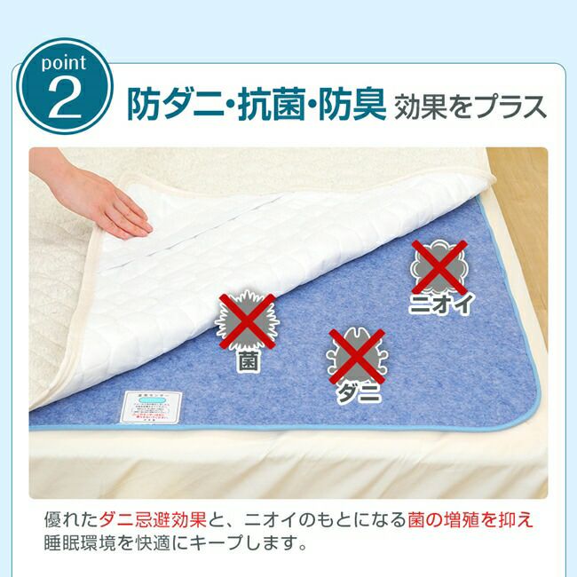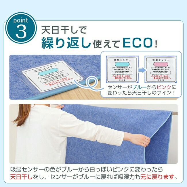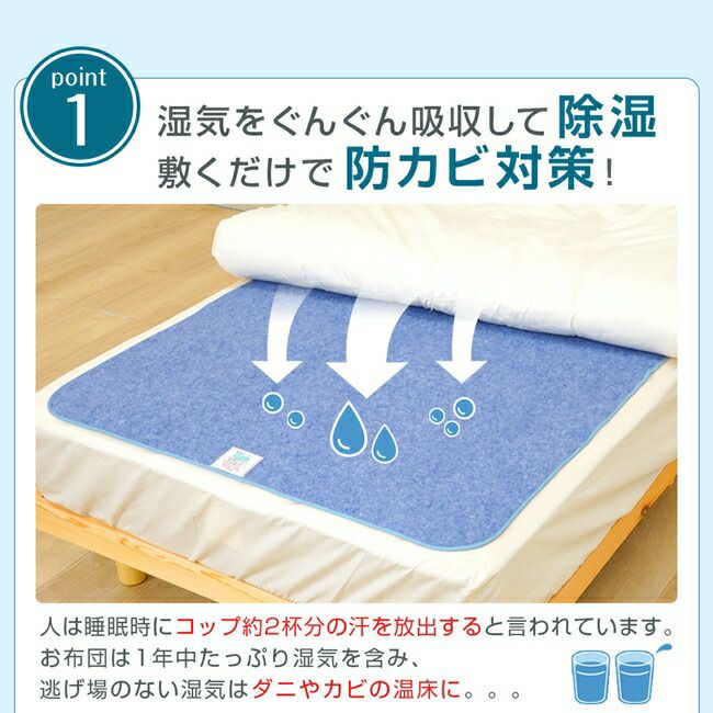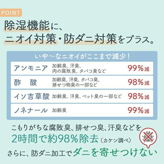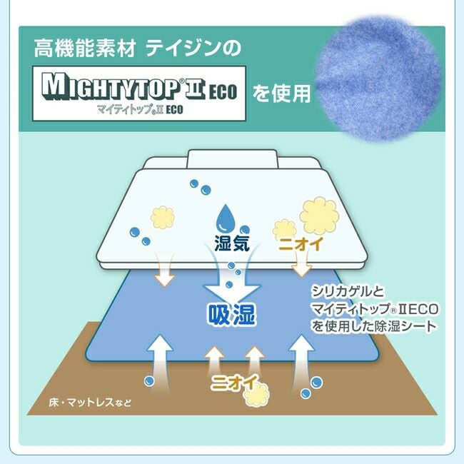帝人フロンティア「マイティトップⅡエコ」素材を使用し、湿気もニオイもぐんぐん吸収!敷くだけで防カビ対策にもなります。