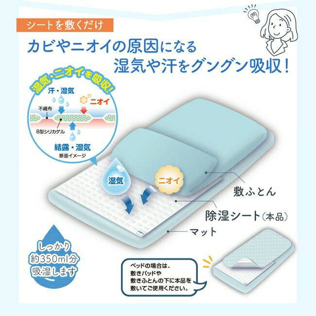 湿気や汗のニオイをグングン吸収する「敷きふとん」用の除湿シート。