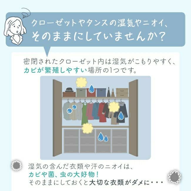 湿気や汗のニオイをグングン吸収する「クローゼット」用の除湿シート。