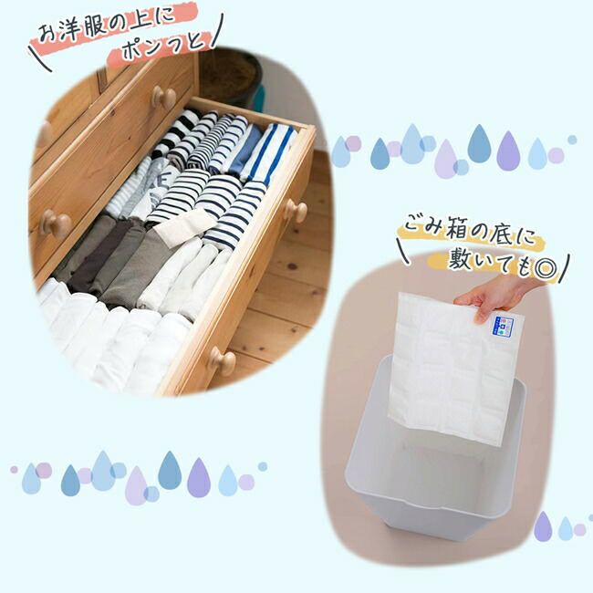 大切なお洋服の収納やタンスの引き出しなど、湿気やカビが気になる場所にB型シリカゲルが湿気をグングン吸収します!