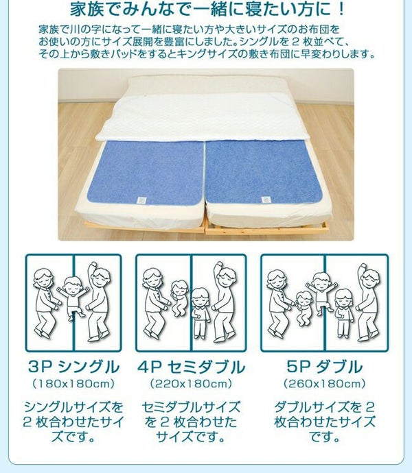 5人用:約130×180cm(2枚入り)⇒購入はこちら