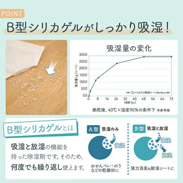 ◆布団やマットレスの下に敷いたり、押し入れの収納時など、湿気やカビが気になる場所の湿気をB型シリカゲルがグングン吸収。