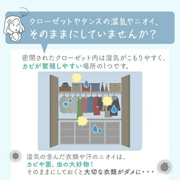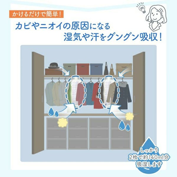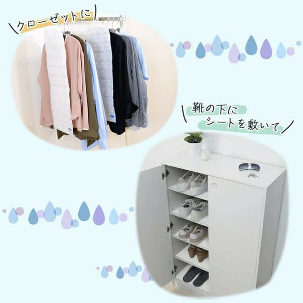 ◆梅雨時期や冬の結露、汗の湿気やニオイをグングン吸収する「クローゼット」用の除湿シート。