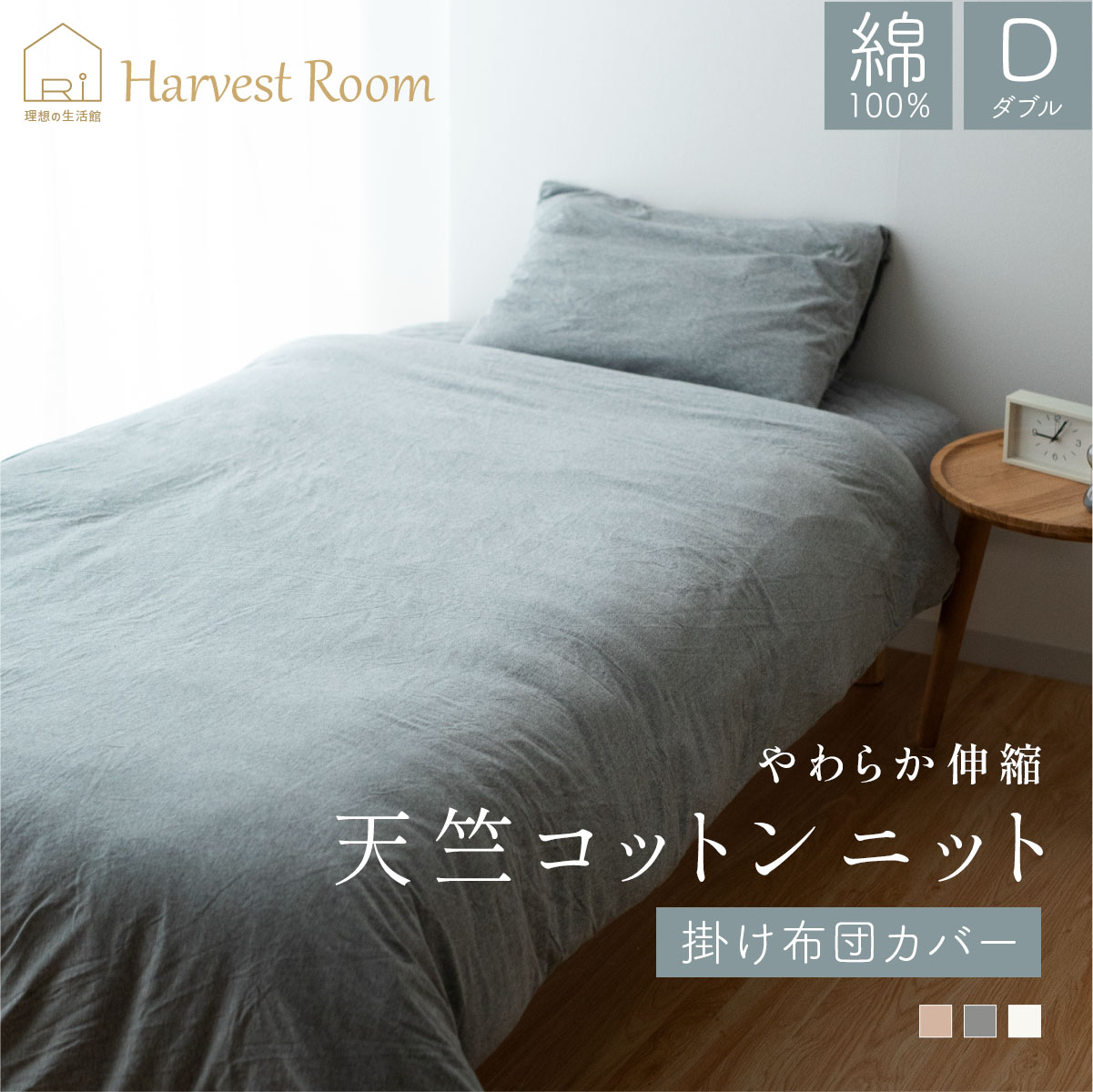 • 天竺ニット 掛け布団カバー ダブル 190×210cm HarvestRoom ハーベストルーム 綿100% コットン 天竺 単品 綿 軽い おしゃれ 着脱簡単 寝具 杢カラー くすみカラー 通年 送料無料