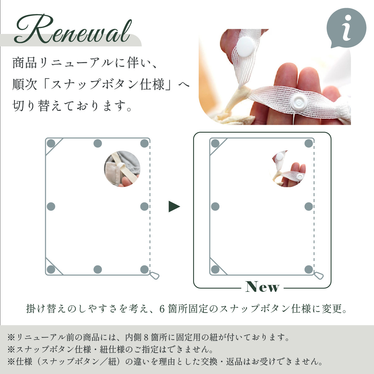 スナップボタン・紐をお選びできません
