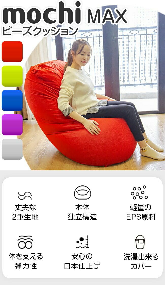 他の画像を見る もちMOCHI MAX ビーズクッション 特大 カバー 日本製 おしゃれ ソファ 北欧 ビーンズ MAX 人をダメにするソファ クッション 一人暮らし 抱き枕 もちMOCHI MAX ビーズクッション 特大 大きい 日本製 おしゃれ ソファ 北欧 ビーンズ MAX人をダメにするクッション 人をダメにするソファ クッション 一人暮らし 抱き枕 直販価格 ¥ 23,980 税込 売り切れ 詳細を見る お気に入りに登録する