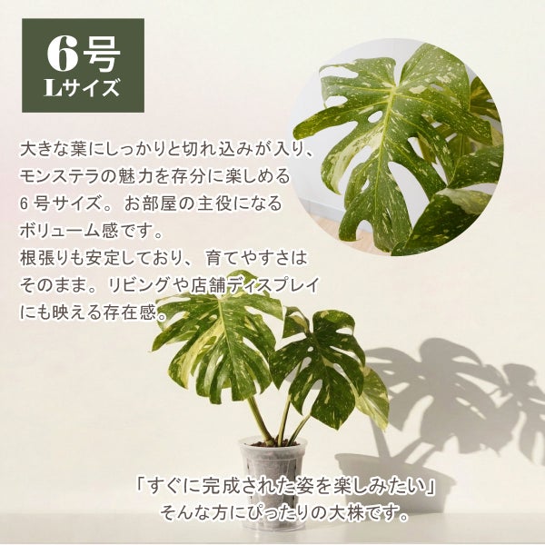 大きな葉にしっかりと切れ込みが入り、モンステラの魅力を存分に楽しめる6号サイズ。