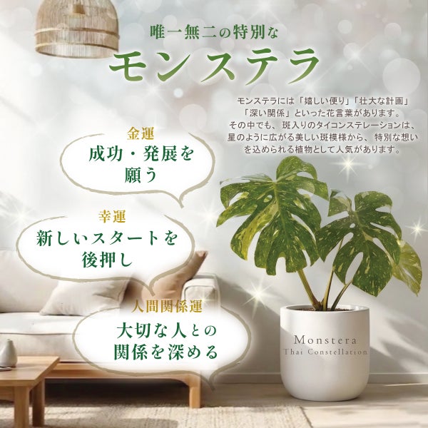 母の日 新生活 希少なモンステラを特別な贈り物に 出産祝い 快気祝い 開業祝い メッセージカード 楽天以外 斑入りモンステラ タイコンステレーション Monstera Thai Constellation