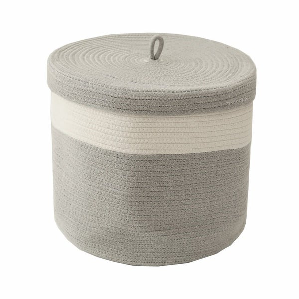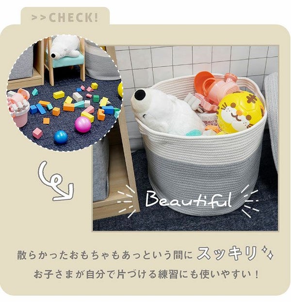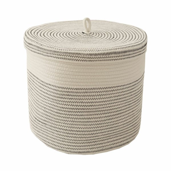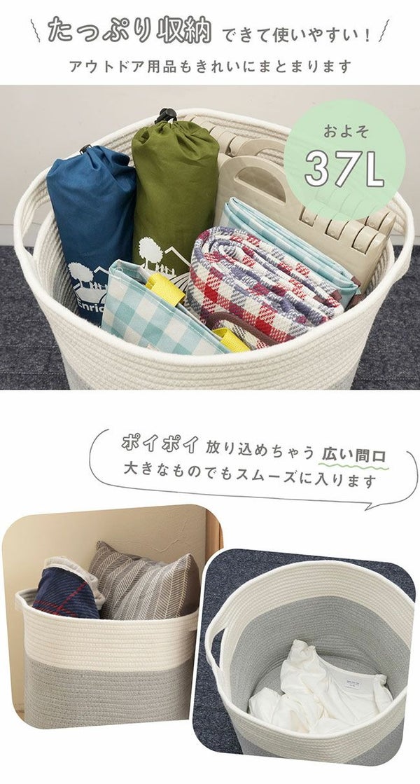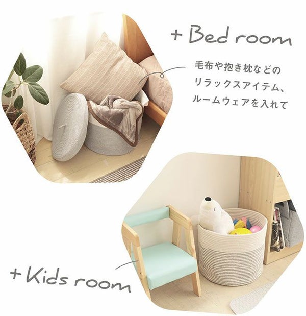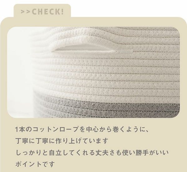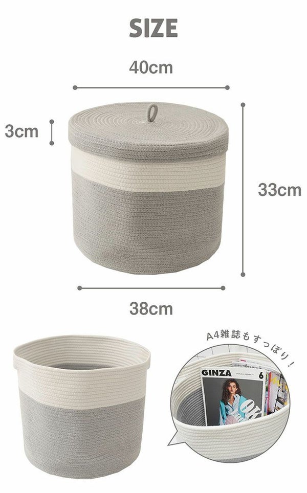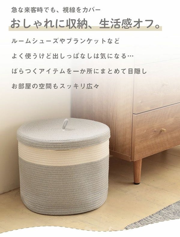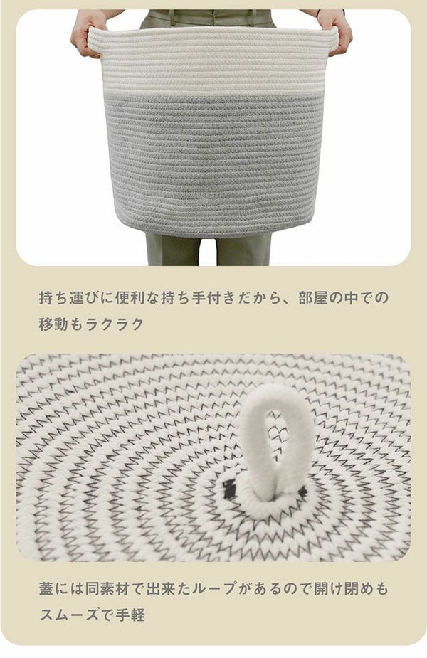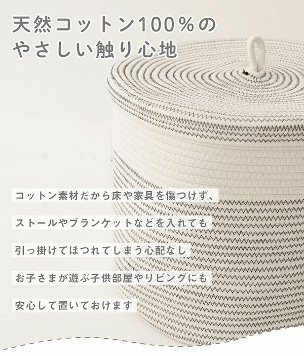 コットン100%のやわらかな収納、蓋付きコットンバスケット。ふたで目隠ししてすっきり整理整頓!インテリアに馴染むので見せる収納としても。 フタ付き コットンロープバスケット