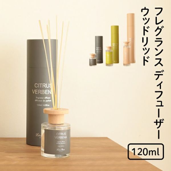 どんな部屋、インテリアにも合うシンプルなデザイン!プレゼントにもおすすめ!玄関、トイレ、リビング、ワンルームにも。女性・男性問わず好きな香り。 フレグランス ディフューザー ウッドリッド 120ml S スティック リードディフューザー アロマ ディフューザー ルームフレグランス ガラスボトル 人気 おすすめ おしゃれ プレゼント 柑橘 ムスク ラベンダー ウッド