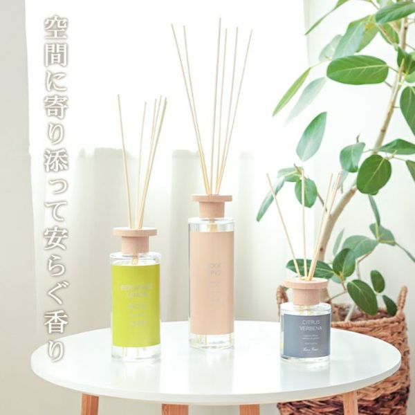 キャンドルや火、電気を使わなくても空間に香りが広がる手軽さが人気のリードディフューザー。