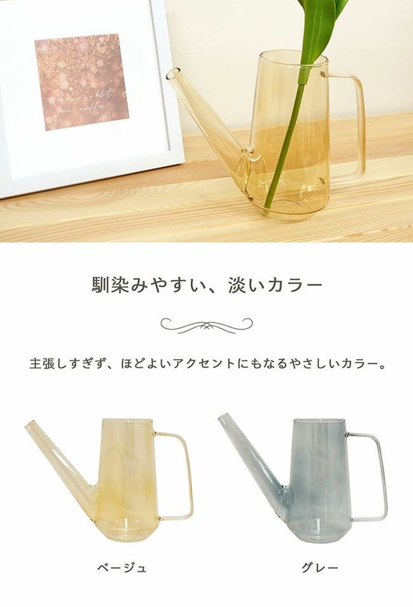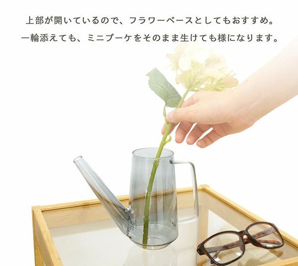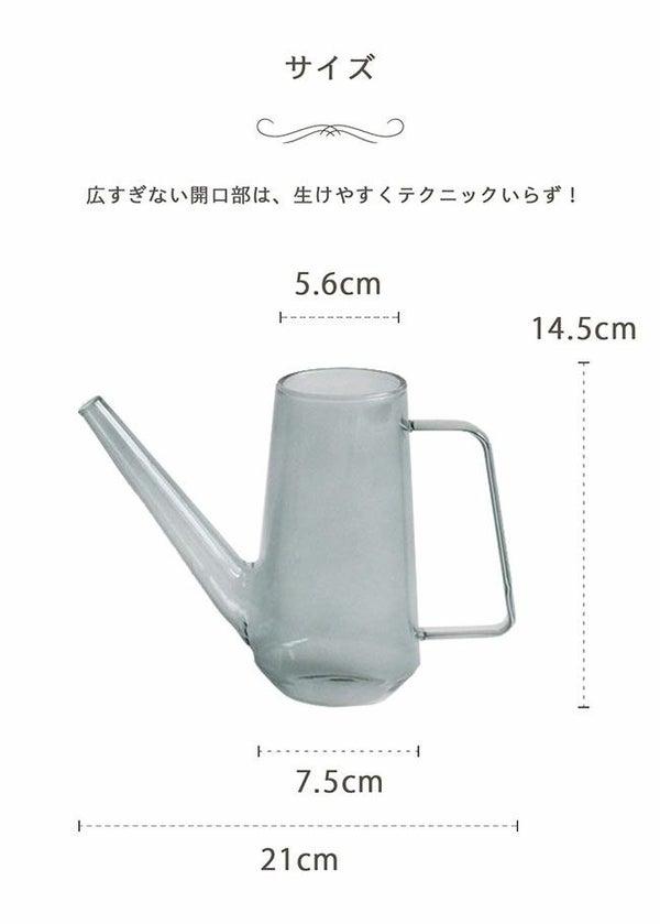 お部屋のインテリアとして取り入れやすい淡い色のガラスで小ぶりサイズのウォータリングポット。