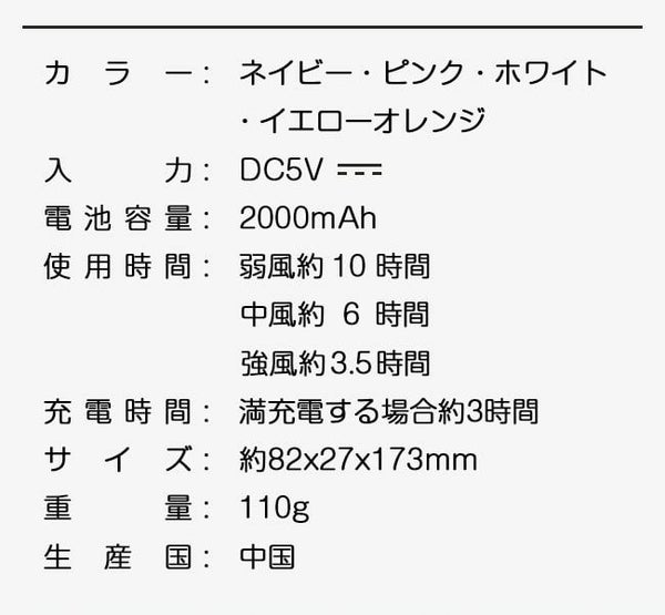 ●電池容量:2000mAh リチウムイオン電池
