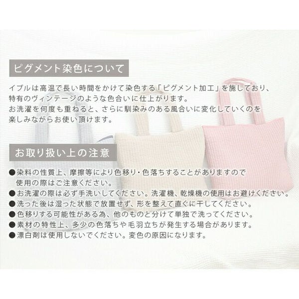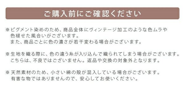 ※素材の特性上、多少の色落ちや毛羽立ちが発生する場合があります。色移り防止のため、他のものと分けて洗濯ください。