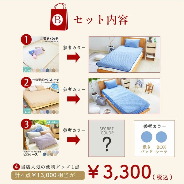綿100%の抗菌タオル地の敷きパッド/ボックスシーツの福袋を お正月だけの限定価格でご用意しました! 福袋 2026 敷きパッド ボックスシーツ 3人用 ファミリーサイズ 選べる 綿100% 抗菌パイル 半額以下 お得 寝具 冬限定 送料無料 数量限定 セット タオル地 清潔 快適 洗える Gift ふわふわ 人気ランキング 新春セール プレゼント ギフト キングサイズ 200×200cm