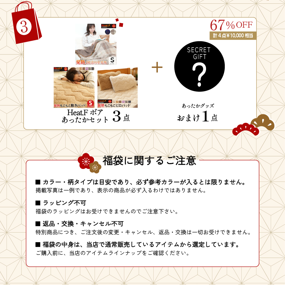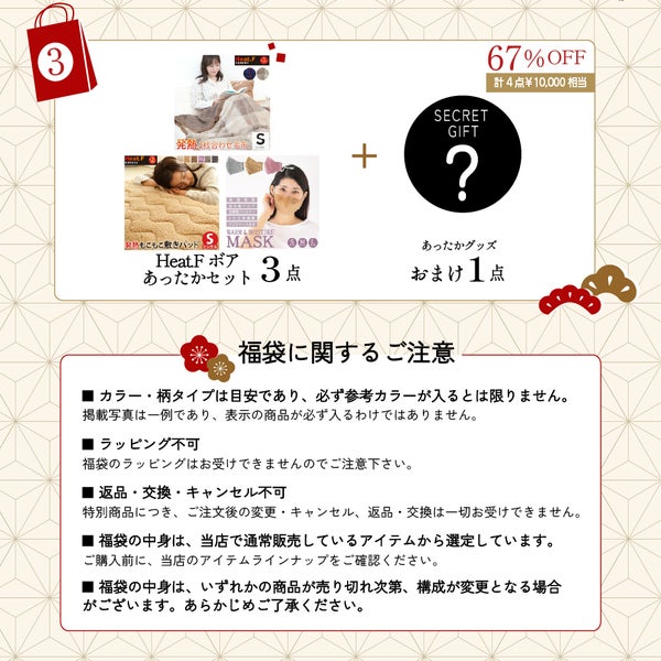 福袋の返品・交換・ご注文後のキャンセルはお受けできませんので