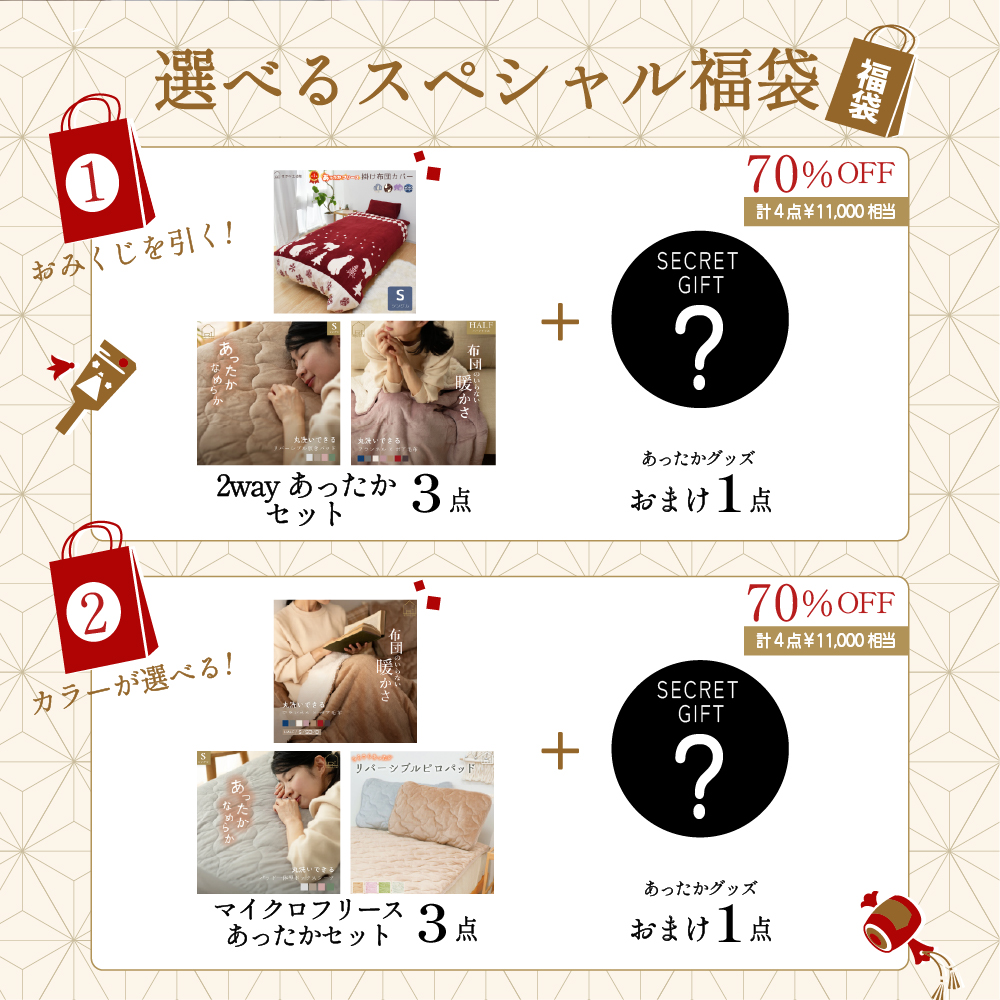 MAX70%オフで超お得なあったか寝具の福袋。