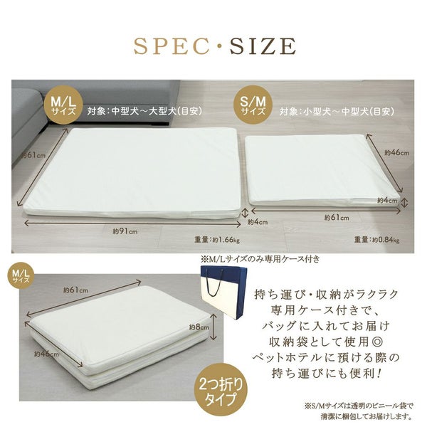 M-Lサイズ(中型犬~大型犬まで対応):(約)幅60×長さ90×厚み3cm(中芯)
