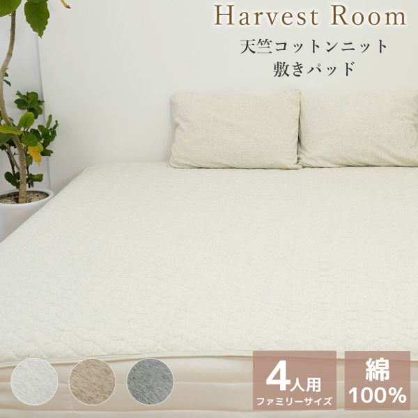• 天竺ニット 敷きパッド 4人用 240×205cm HarvestRoom ハーベストルーム 綿100% コットン 天竺 単品 ファミリーサイズ 綿 軽い おしゃれ 着脱簡単 寝具 杢カラー くすみカラー 通年 送料無料
