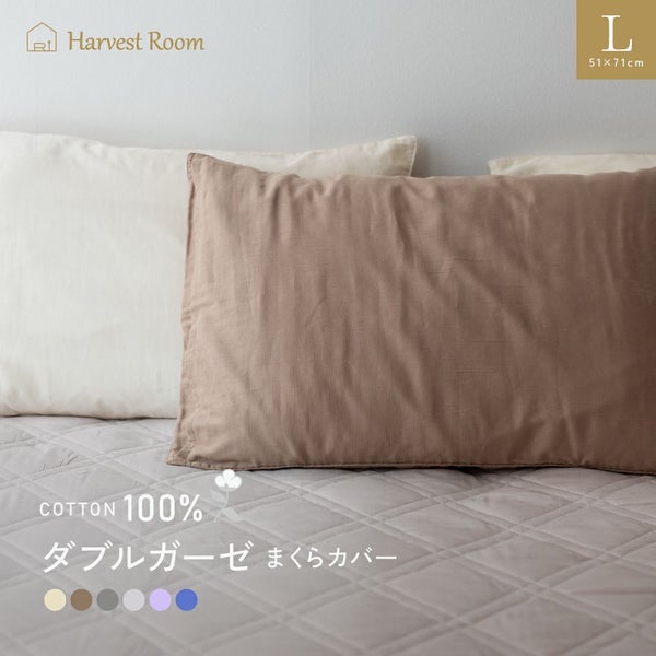 HarvestRoom 優しい肌触り!コットン100%で安心!使えば使うほどに私好みのカバーに育つダブルガーゼ ダブルガーゼ 枕カバー ピロケース L 51×71cm ネコポス