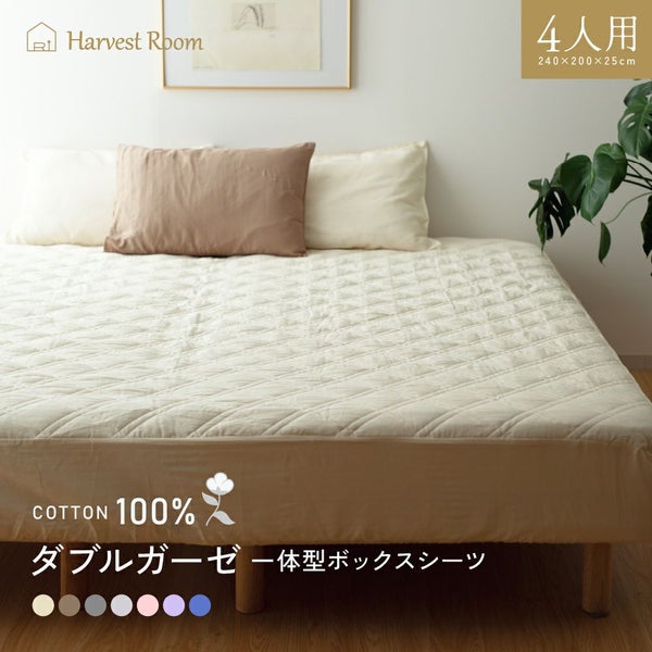 優しい肌触り!コットン100%で安心!使えば使うほどに私好みのカバーに育つダブルガーゼ ダブルガーゼ パッド一体型 ボックスシーツ ファミリーサイズ 4人用