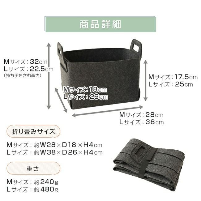 他の画像を見る 折りたためる!柔らかいフェルト素材の収納BOX!持ち運びに便利な持ち手付き!シンプルなデザインで、カラーはインテリアに馴染みやすいグレーとチャコール。 フェルト収納バスケット L 【2個セット】 通常価格 ¥ 3,560 のところ 直販価格 ¥ 3,381 税込 会員価格あり 会員特別SALE ¥ 3,116 税込 詳細を見る お気に入りに登録する