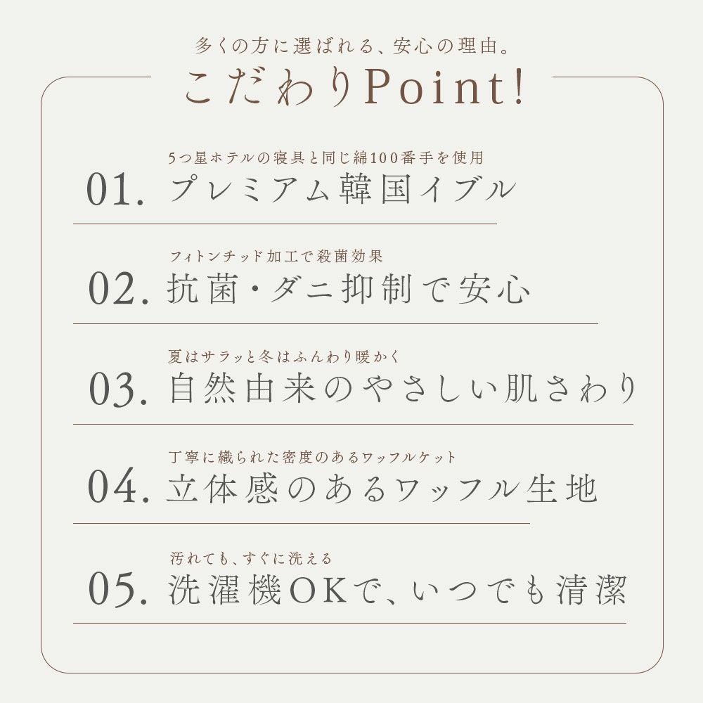 他の画像を見る ワッフル織の凸凹感が気持ちいい。無地でシンプルなデザインだから、どんなインテリアにも馴染みやすい!夏は冷房対策や、冬はひざ掛けとしても一年中使えます。 ワッフルケット Sサイズ/75×95cm 通常価格 ¥ 3,960 のところ 直販価格 ¥ 3,762 税込 詳細を見る お気に入りに登録する